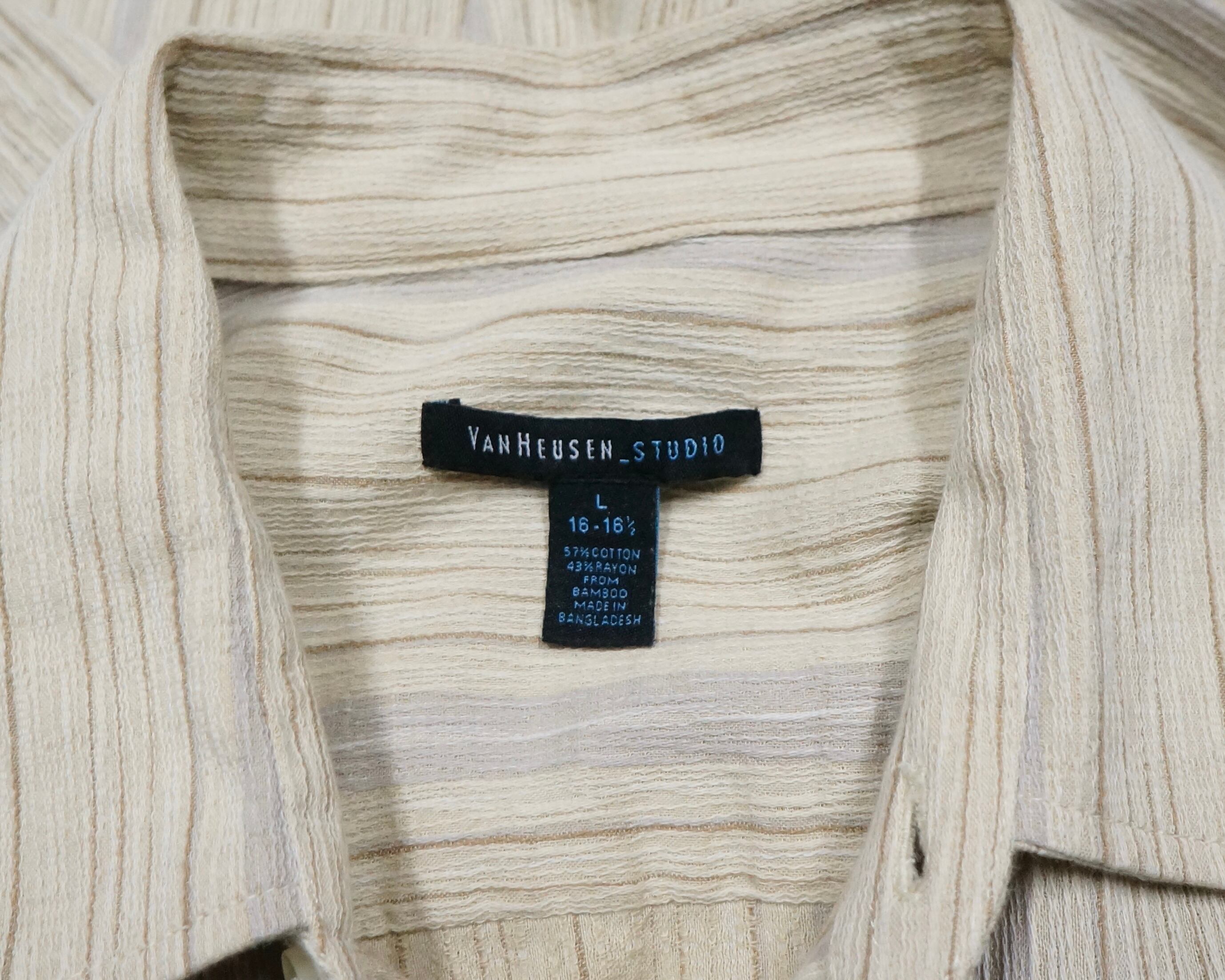 2000’s- "VAN HEUSEN" Wave Jacquard Cotton Rayon Stripe Shirt