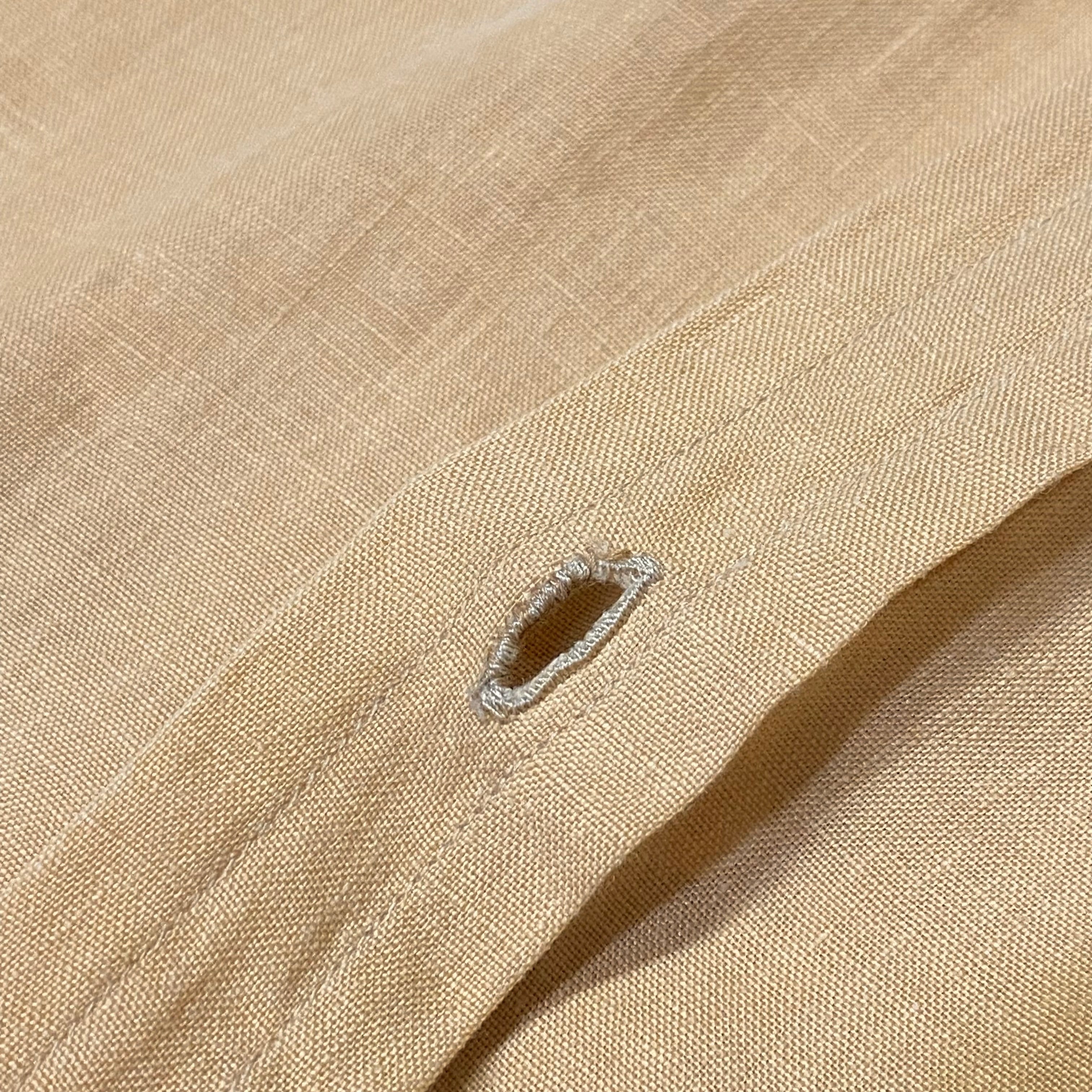上から数えて第5ボタンホールにリペア跡、